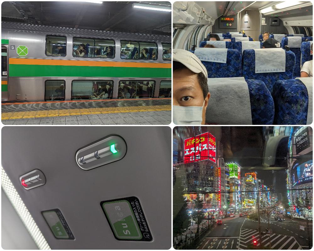 我搭 JR 回池袋,不小心搭到 Green Car 綠色車廂,這是上下兩節的座位,位置比較舒適,但需要額外買票,車上會有服務員來檢查,看你座位頭上的燈是紅是綠,如果是綠就 OK,紅的話,她會問你從哪裡到哪裡,然後報價給你,你再刷一下 Suica 就好。又或是,你在綠色車廂停靠的月台上,用機器先買好票。