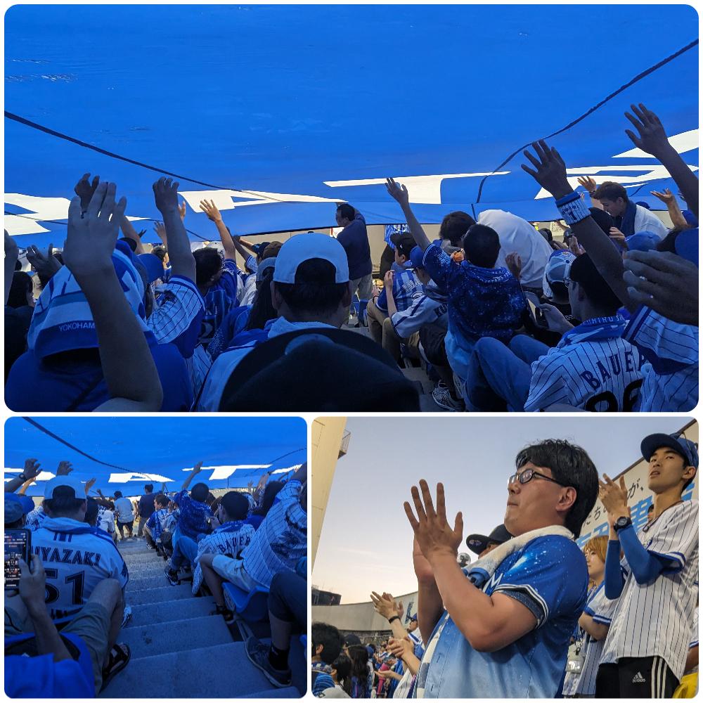 因為我身在主隊應援區,某局中間會被蓋布條,也是我第一次遭遇。我一直好奇是怎樣的體驗,原來布條下空間還是滿大的。說真的,坐在外野應援區很吵,耳朵會受不了,感受夠了就該離開了。