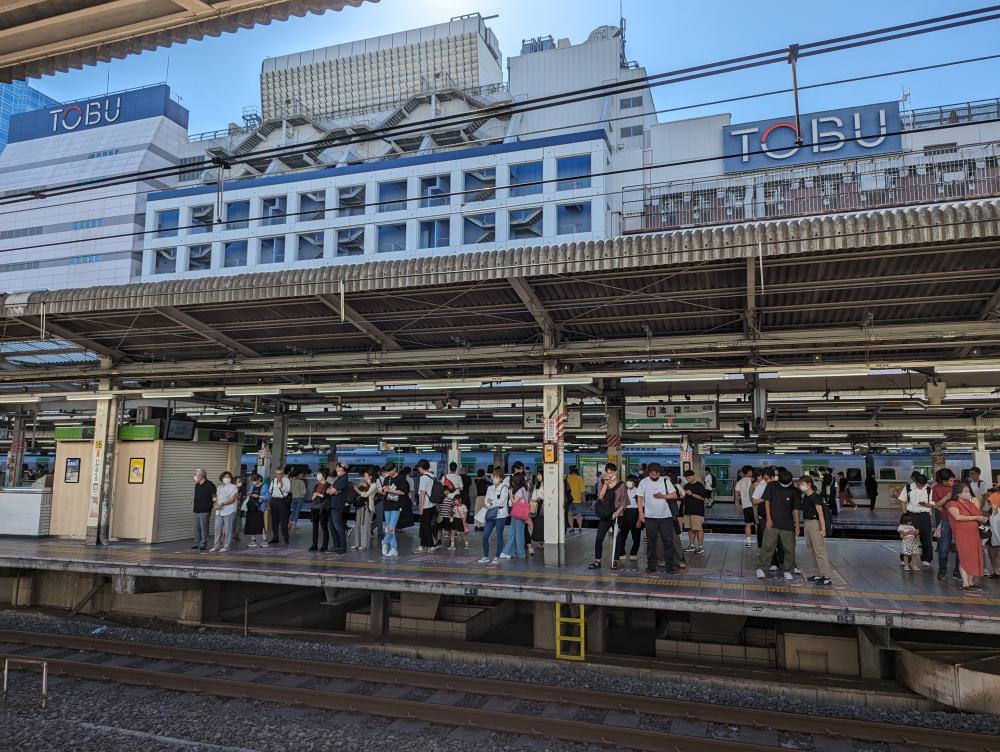 從池袋站搭 JR 去橫濱球場,有點不太習慣大城市的人潮和節奏,你知道,沙鹿住太久了。