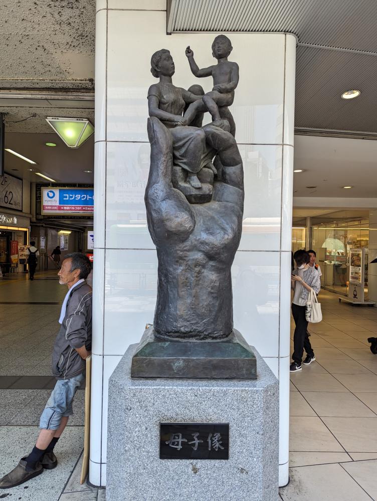 上午逛完,經過池袋這尊母子像,旁邊的人正在等他媽媽 (設計對白)