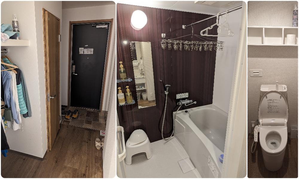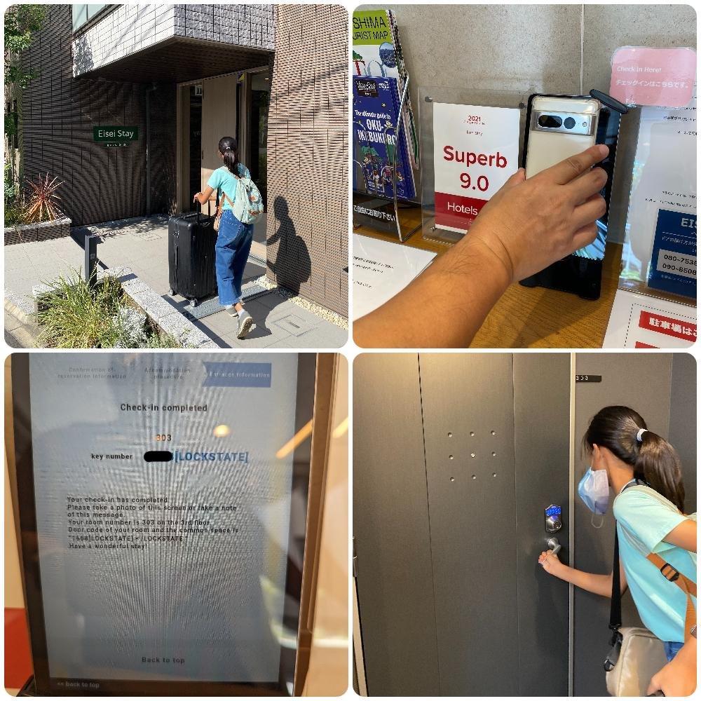 沒有 Check-in 櫃檯或房東,自助式報到,當天中午前會給你房號和密碼,掃一下 QR Code 就完成 Check-in,方便又快速。現在日本很多這種自助式報到,後幾天我們住 Airbnb 也是這樣。