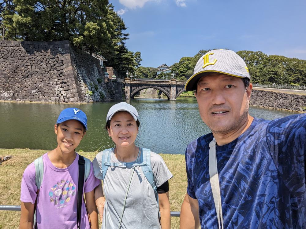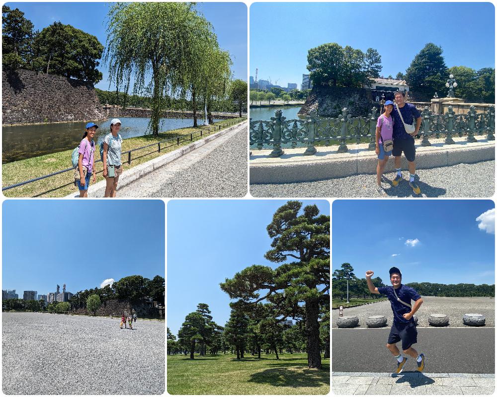 我們沒有做功課,不知道皇居是否能進去,可以的話,從哪進去。但不會是今天,今天太熱,我們沿著護城河拍拍照,這種太陽曬 10 分鐘就是極限了。