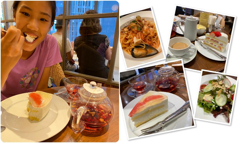 同時間,在澀谷的 Hikarie ShinQs 百貨四樓,有對母女開心的享用 Harbs 的美食和甜點。她們說還是一樣好吃。