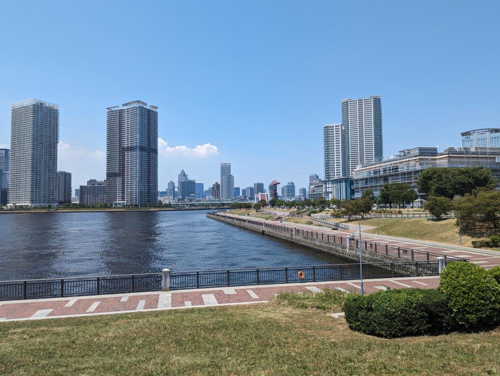 我們預約了下午一點的 teamlab,從 lalaport 沿著河走過去。