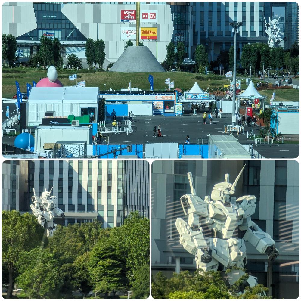 坐百合海鷗號回豐洲,經過 DiverCity 的白色鋼彈,在車廂內欣賞他高大的身影。