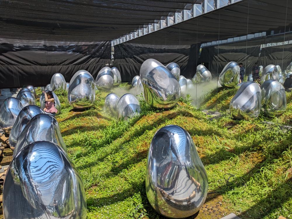 回到鞋櫃的分叉口,往另一區走,到一個室外區,很多異形的蛋,但大家都對這區沒什麼興趣,因為太常見? teamlab 的代表性裝置之一吧。