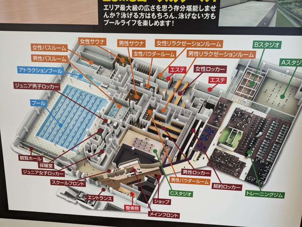 lalaport 有一棟是健身房,牆外貼有內部地圖,這也太大了吧。
