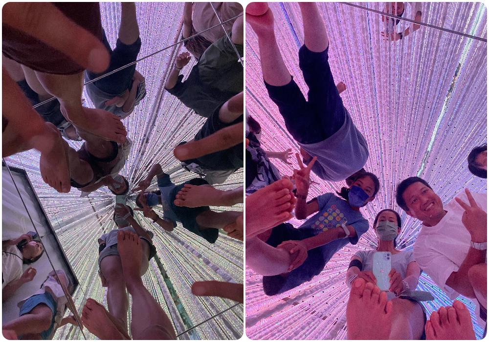 女生怕走光的話,請不要穿裙子來,因為在 teamlab 的很多區域,都是透明地板。