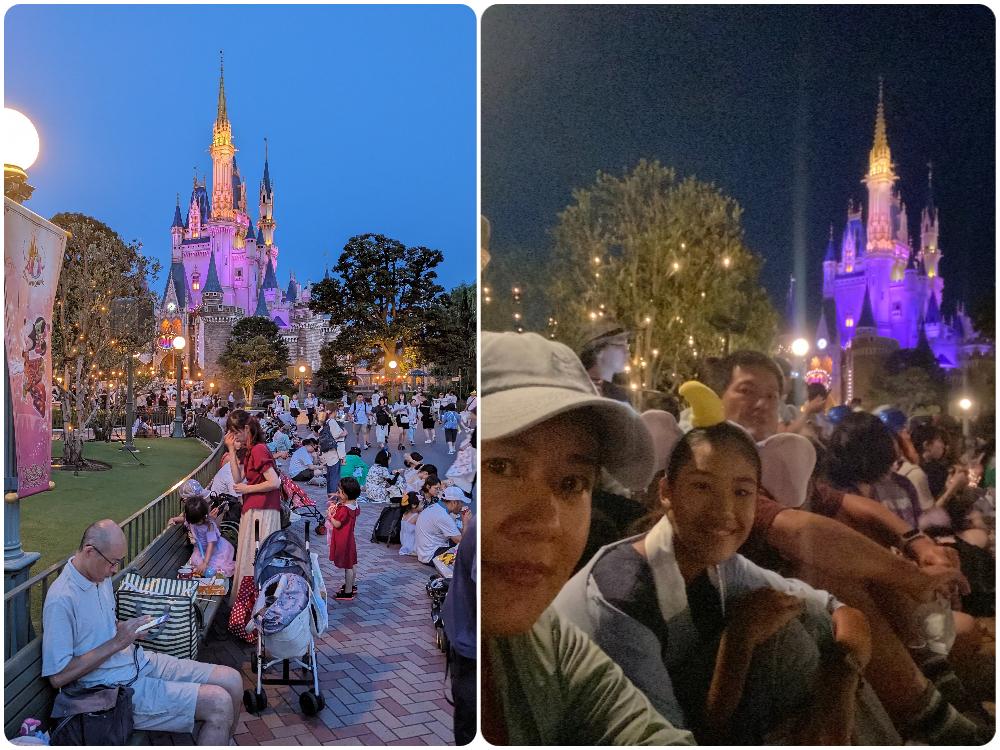 我選的這個位置可以照到城堡,和花車一起入鏡。但算是遊行隊伍的中後段,如果你想趁遊行結束快衝熱門設施的話,就最好在前段看,比較早自由。