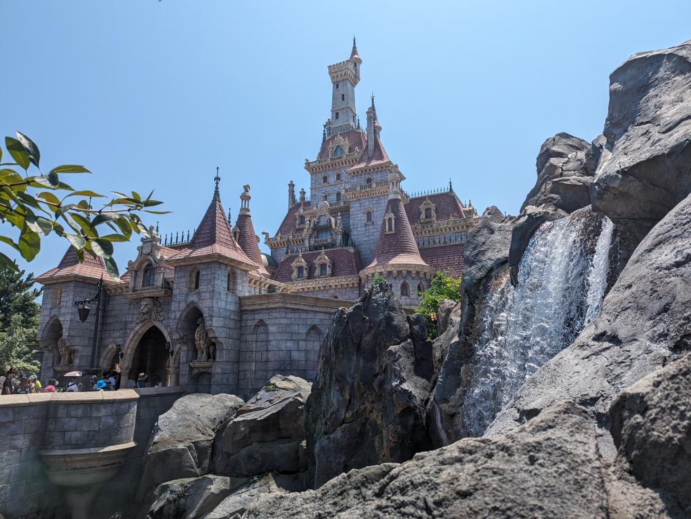 坐著咖啡杯裡,帶你走過一遍電影劇情,滿不錯的體驗。出口在城堡的側後方,這角度拍出去也是絕美。不想排隊的人,值得買 DPA。
