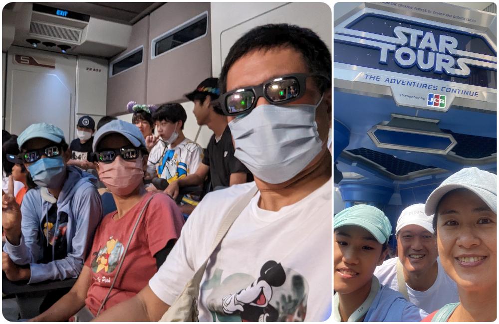 我們沒來過東京迪士尼,加上熱昏了頭,不知道怎樣才是開園的最佳去處,所以看什麼沒排隊就先衝進去再說,原來是 Star Wars 的立體電影,好不好看不重要,重點是,室內有冷氣啊。