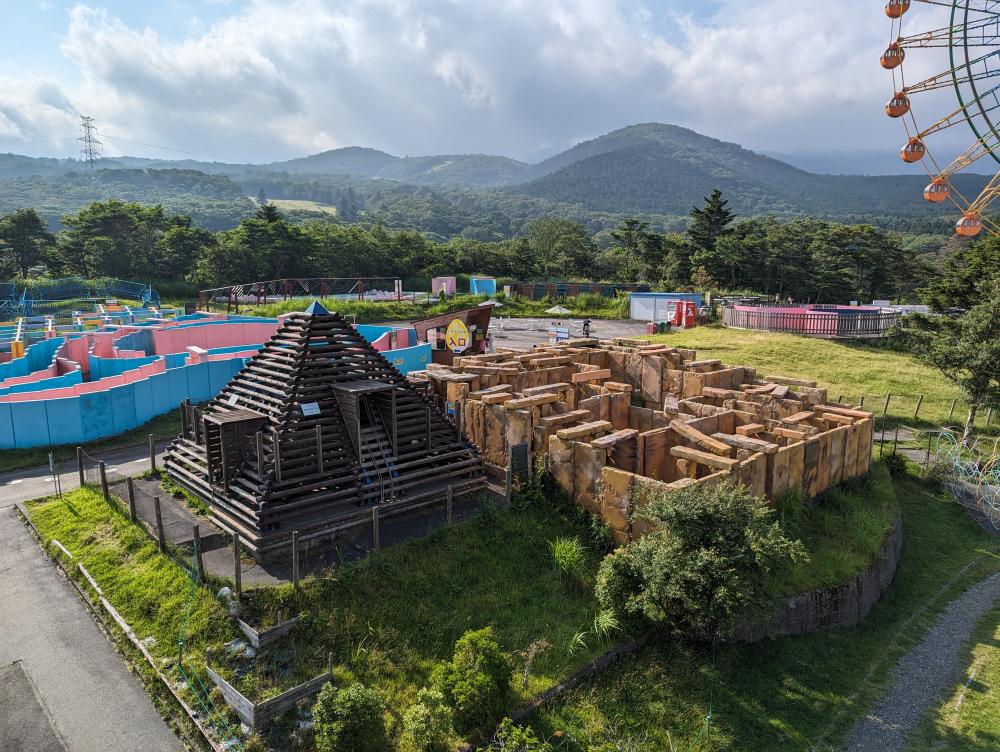 從上方往下看,可以看到另外三座迷宮,那就是五座了啊,如果你是一個「迷宮控」,靜岡縣的 grinpa 樂園很適合你,雖然它在山上,要開一段山路,我不知道若不自駕要怎麼來。