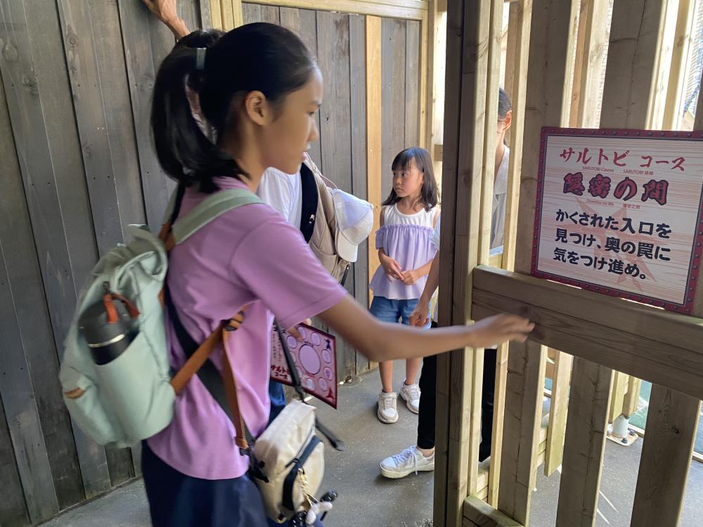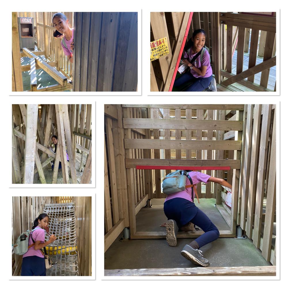 女兒很快就衝了進去,身手矯健的關關過,我則在後面思考著...我的體型有辦法玩嗎?