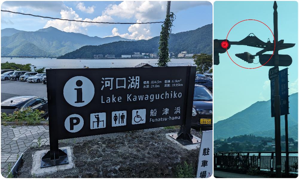 我們開往河口湖,想去找一家富士山當背景的 Lawson 便利商店,發現這區連紅綠燈桿上都有富士山造型。