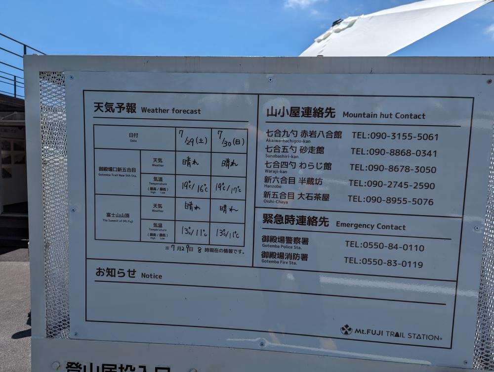 新五合目管理中心的外面,有所有山屋的聯絡電話,這張照片給大家留存,方便你未來攻頂用。