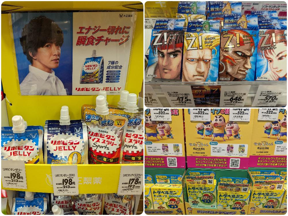 Aeon Mall 日之出也有合理價格的藥妝店,在這買到木村拓哉代言的果凍飲,還有 Street Fighters 和 Z! 聯名的眼藥水。