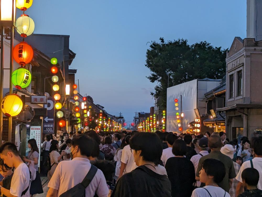 查到了!(網路有點慢),這祭典叫做「川越百萬燈夏日祭」,應該是每年七月的最後一個周末,週六和週日兩天,今年是 7/29 (六) 和 7/30 (日),我們剛好趕上第二天。