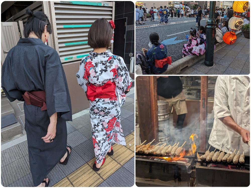 我們只是出來散步,早知道有祭典女兒就可以穿浴衣來了。天漸漸暗,人越來越多,我們繼續往前走,看這祭典有什麼特別的。