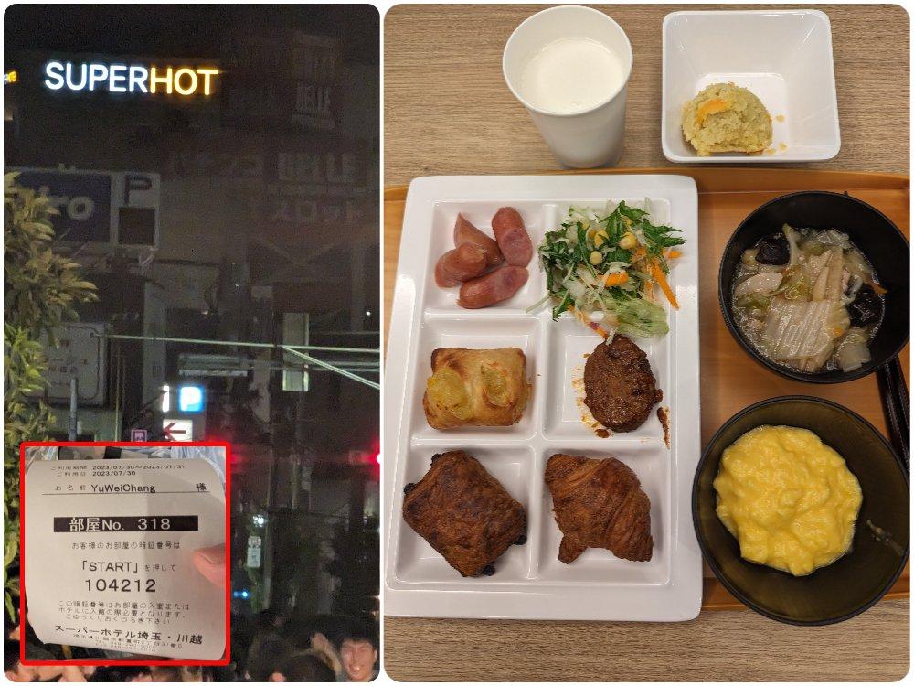 今晚我們住川越的 Super Hotel,由於房間很小,我們訂了兩間,其中一間是上下舖給妻小睡,我自己睡一間。這樣兩間房,免費停車場,浴池和早餐,費用約 4500 台幣,還算便宜。
