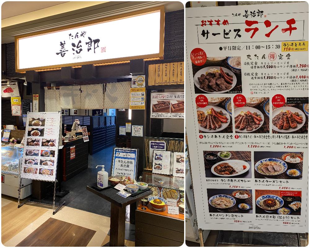 肚子餓了看什麼都好吃,什麼餐廳都嘛可以,但當我們看到有善治郎時,三人立馬有了共識,因為第一晚我們在仙台站就想吃,只是排隊太久去吃了利久。沒想到 lala garden 也有,不用排隊,更好的是,剛好趕上午間套餐的時間,快快,午間優惠只到下午 3:30,現在已經 3:25 了。