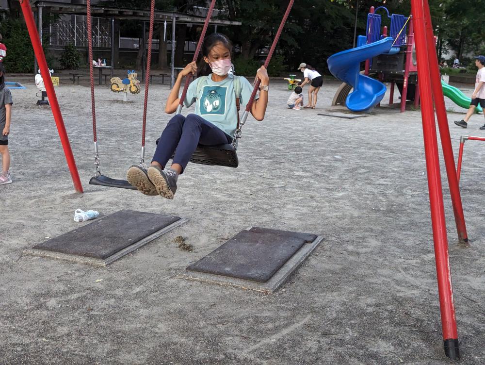 女兒連兩次去日本都沒有盪鞦韆,剛好住宿附近有個小公園,讓她完成了小小目標。
