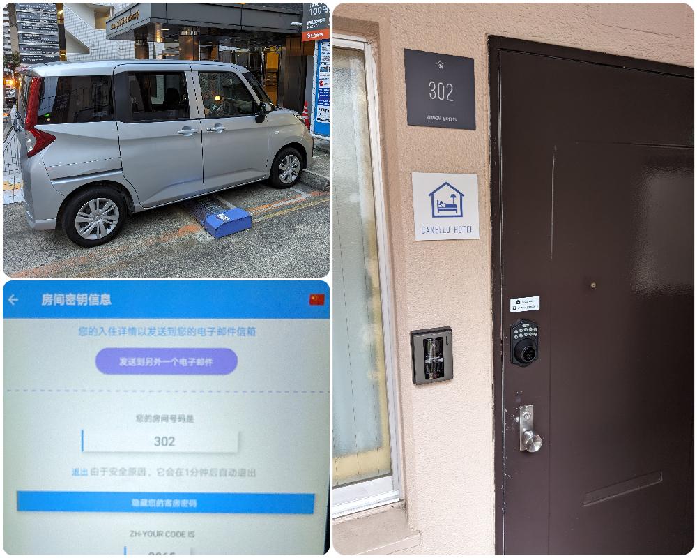 這次由於天數較多,行李只會越來愈多,最後兩天我們必須有大空間方便整理行李,所以選擇了「同價位、但空間大」的公寓式 Airbnb,所有和屋主的溝通都是透過 Airbnb 的 Email,包括自助式 Check-in 的房號和密碼。這間 Airbnb 位於仙台中央警察署的對面,附近有很多停車場,但不建議停地下室機械停車場,下圖只是方便我下行李,真正停過夜是在附近走路五分鐘的一個平面停車場,24 小時的費用上限是 1,400 日幣。