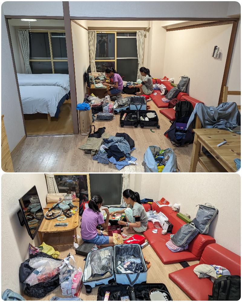 客廳很大,行李箱全展開沒問題。母女倆已經開始打包,因為東西實在太多,一天收不完。