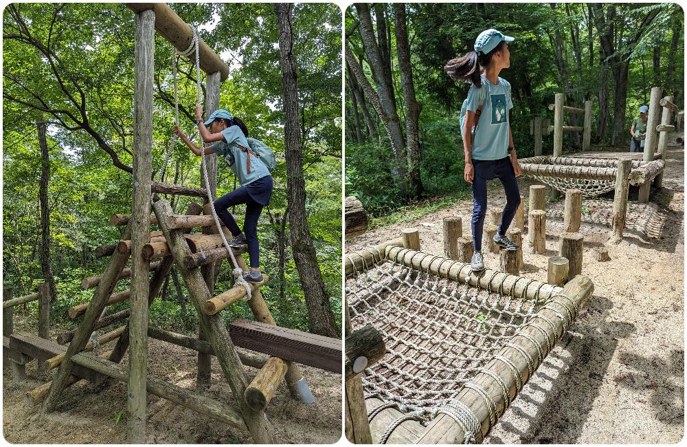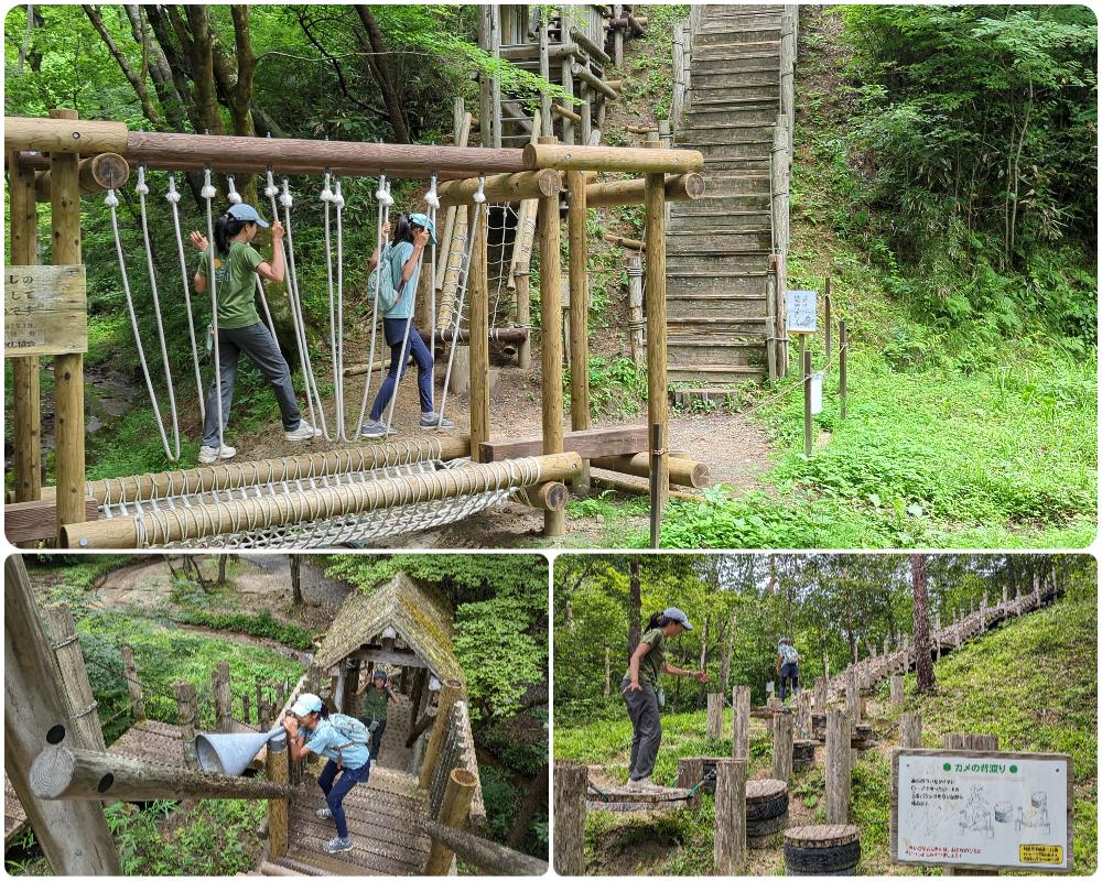 不是每個設施都有開放,但無損關卡之間的流暢,如果你不想爬上爬下,接觸木頭,一旁也有樓梯方便你跟隨。這座山"應該"是有熊的,只是我們從來沒遇過。