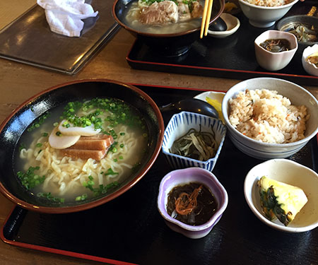 行李放下後,我們來沖繩旅遊的第一站是「首里城」,但在那之前,要先去吃午飯,坐電車到最後一站「首里」,一行人推著娃娃車沿著馬路走,這段路比想像中來的長,大概要走15分鐘,但為了名勝古蹟(為了吃吧),只好繼續走下去。請記得日本是右駕,所以過馬路的時候是要看右邊,如果你搞不清楚要看哪邊的話,就兩邊都看吧,花不了多少時間,卻可以確保您的人身安全,因為當你初來乍到右駕的國家,不習慣車子的方向,過馬路真的有點危險,一定要小心...[暢遊沖繩] 琉球茶房 首里城下60年赤瓦古宅美食