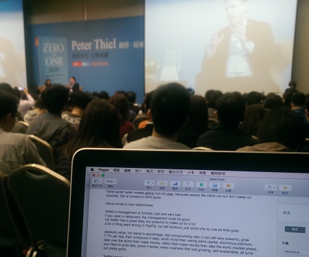no formula for enterprenuership 創業沒有公式 only one zuckerberg for sns, only one gates for one os system 一個行業只會有一個獨家,唯一的獨家(因為Peter很強調獨佔性-monopoly) indirect intellectual question is what great company is not established, its hard because its socially uncomfortable, interesting answers are ones people not like to hear, people dont think make sense, you dont get support early on 還有什麼偉大的公司沒有被建立?你要去想這件事,但這件事之所以難,是因為很難被社會認同,大家喜歡聽已知的答案,但有趣的答案是人們不想聽的,他們認為不合常理,所以在早期你不會得到支持