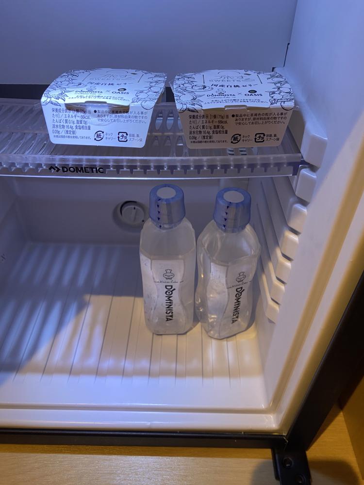 冰箱內有免費招待的桃子果凍和瓶裝水,算 Dormy Inn 標配。