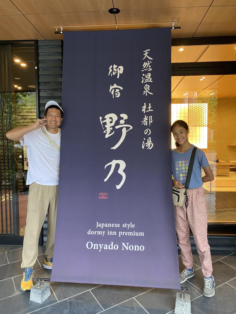 拖著行李從仙台站走路約 7 分鐘,我們來到第一晚的飯店 - 御宿野乃 仙台 Onyado Nono,門口就有大帆布標誌,歡迎旅人到來。
