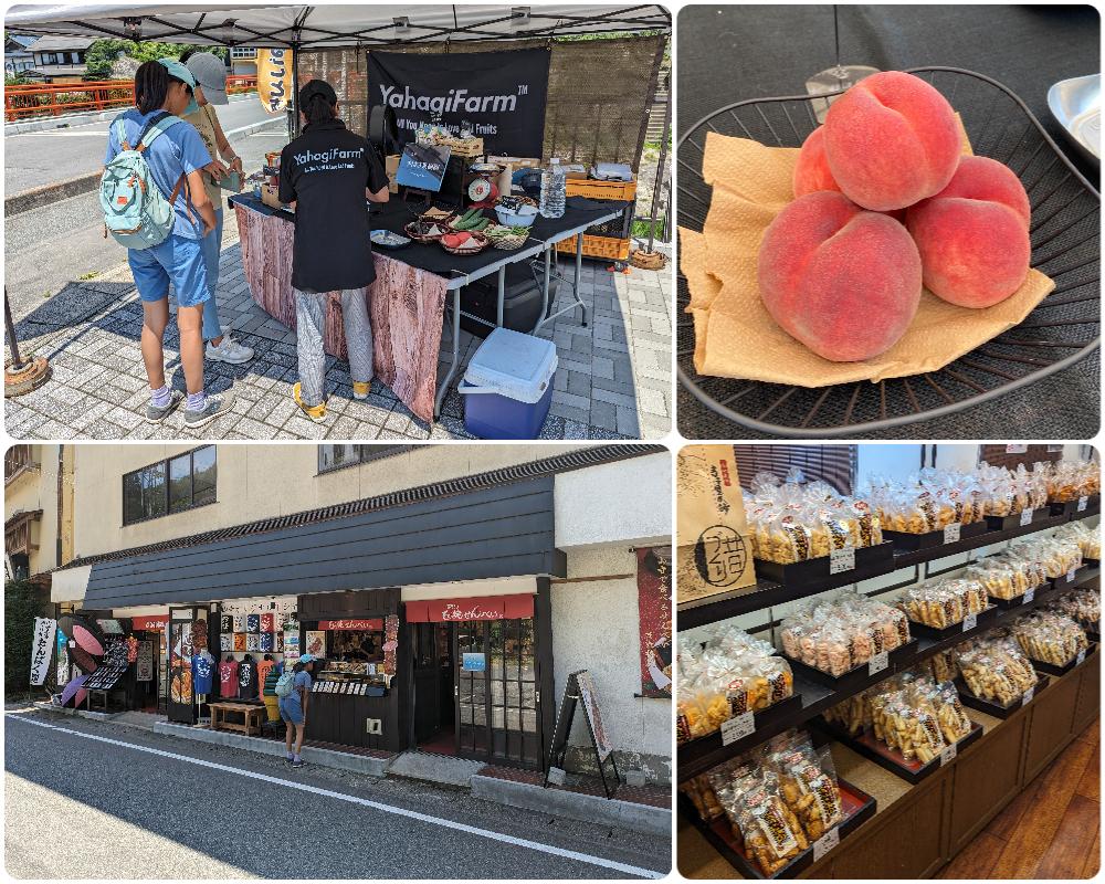 大概爬了一個小時吧,就玩夠下山了。橋旁有賣水蜜桃,我發現東北的水蜜桃真是又大又便宜,也算好吃,而且保證多汁。必經路上還有一家賣仙貝的,上次來覺得好吃,所以我們買了一大包,到現在都還沒吃完的大包。