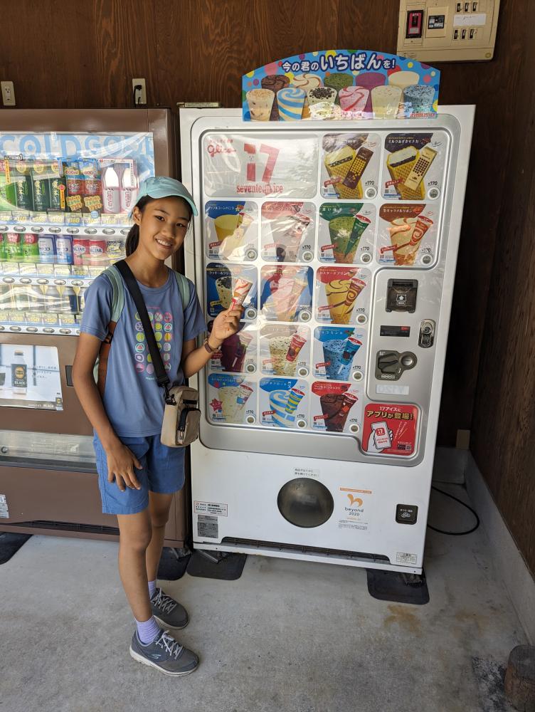 山下還有女兒最愛的冰棒販賣機 SEVENTEEN,他說葡萄還是最好吃,今天吃完草莓的感想。
