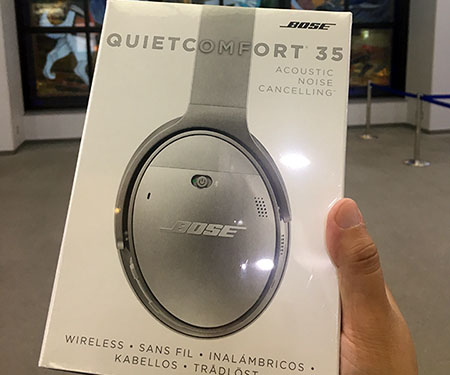 這次鎖定了其中一個要買的就是這支Bose QC35,久聞他的降噪效果好,無線接收方便,而且日本買便宜很多,所以我一去 Bic Camera 確定價格後就買了。回程在岡山機場,上飛機前,來個快速開箱吧 [暢遊岡山] Bose QC35開箱及心得 超滿意的降噪藍牙耳機