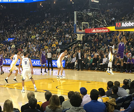 決定來美國進修除了上課的行程外,第二件事就是來買 NBA 金洲勇士的票,時間上最適合的一場是 11/27 (週一),而且還送 David West 的搖頭娃娃,雖然對上的是戰績墊底的沙加緬度國王,一隻沒有球星的球隊,除了一位老球星 Vince Carter 外。我直接上 TicketMaster 網站買,第一排位置美金 276.11,夯不啷噹加一家約台幣 8500,花這麼多錢看一場球賽值不值得?看你怎麼想,我是覺得 Stephen Curry 和 Kevin Durant 是最高檔次的球員,就像 Michael Jordan、Kobe Bryant、LeBron James 等「世代級」的球星,難得有機會不再從電視上看,而是近距離看他們本人,我們努力工作賺錢不就是為了這樣的人生經驗嗎?於是我心一橫,卡就給他刷下去了,很快的就收到「QR CODE 門票」,自動進入我 iphone 的 wallet app,到時用手機掃一下就可入場囉